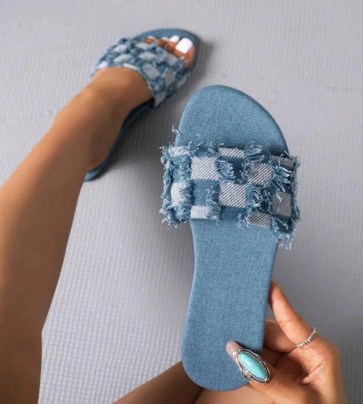 Women's 2024 New Summer Round-Toe Flat Plus-Size Fashionable Plaid Slip-On Sandals Valentines size EUR40 | 7Krave Marketplace