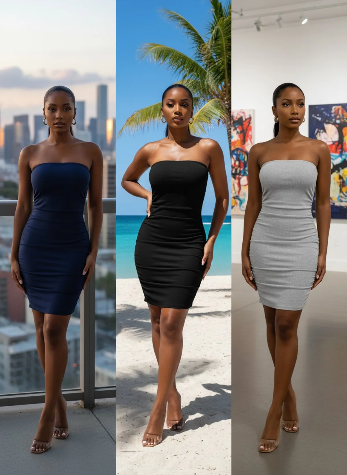 3Pcs Women Ruched Bodycon Dress, Blue, Grey, Black - Size S PKG**876221 | 7Krave Marketplace