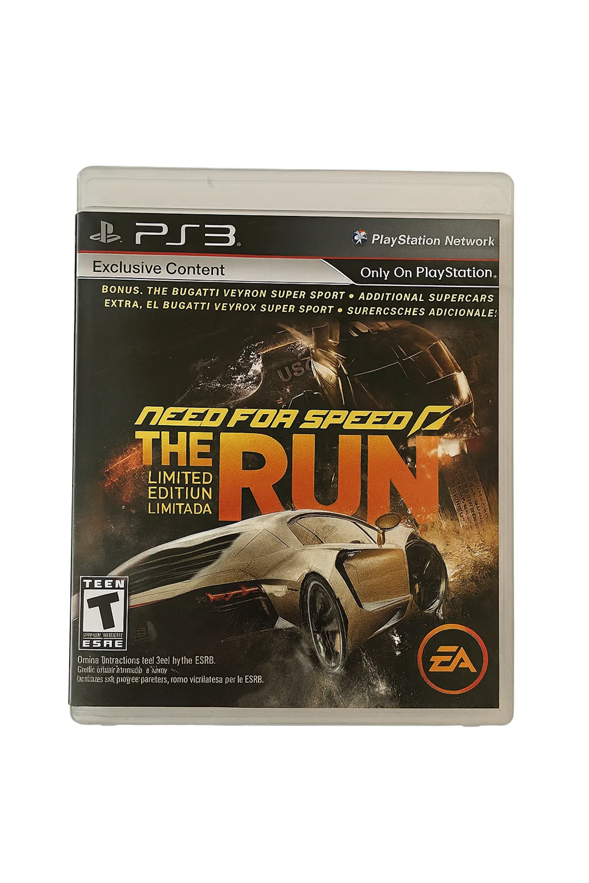Need for Speed: The Run – Limited Edition (PlayStation 3) – Complete with Case & Disc Jump into high-speed, cinematic action with Need for Speed: The Run – Limited Edition for PlayStation 3. This edition includes exclusive bonus content and delivers an intense cross-country racing experience unlike any other in the series. Key Features: Limited Edition Content: Includes additional exclusive supercars such as the Bugatti Veyron Super Sport, Lamborghini Aventador, and more Cinematic Story-Driven Racing: Race from San Francisco to New York in a high-stakes pursuit where every second counts Dynamic Environments: Experience fast-paced races through cities, mountains, deserts, and extreme weather conditions Autolog & Multiplayer Support: Compete with friends, compare stats, and challenge rivals online Realistic vehicle handling powered by the Frostbite engine Condition: Pre-owned in good condition Game disc is clean and tested working Case and cover art included Inside artwork and insert pages included What’s Included: PS3 game disc Original case with front and back artwork Internal insert and manual information Perfect for fans of arcade-style racing and collectors looking to add a Limited Edition Need for Speed title to their PS3 library.