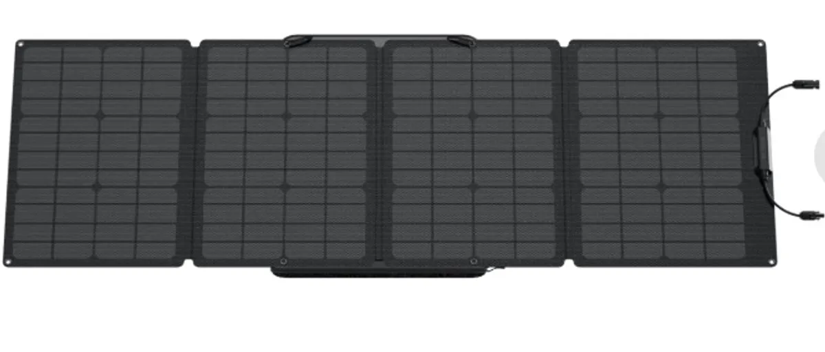 • Portable and lightweight • Up to 23% conversion rate • Self-supporting • Durable with IP68 waterproof rating • One-piece folding design • The solar to XT60 charging cable is included in EcoFlow portable solar panels Specs Unfolded Dimensions 20.2*62.5*0.8 in /178.5*42.0*2.5cm Folded Dimensions 20.2*16.5*0.8 in/42.0 x 48.0 x 2.5cm Weight 8.8lb (4kg) Warranty 12 months Rated Power 110W (±5W) Efficiency 22%–23% Connector Type Solar Connector Open Circuit Voltage 21.8V (Vmp 18.4V) Short Circuit Current 6.5A (Imp 6.0A) Cell Type Monocrystalline Silicon Operating & Storage Temperature −4°F to 185°F Folded Dimensions 20.2*16.5*0.8 in/42.0 x 48.0 x 2.5cm