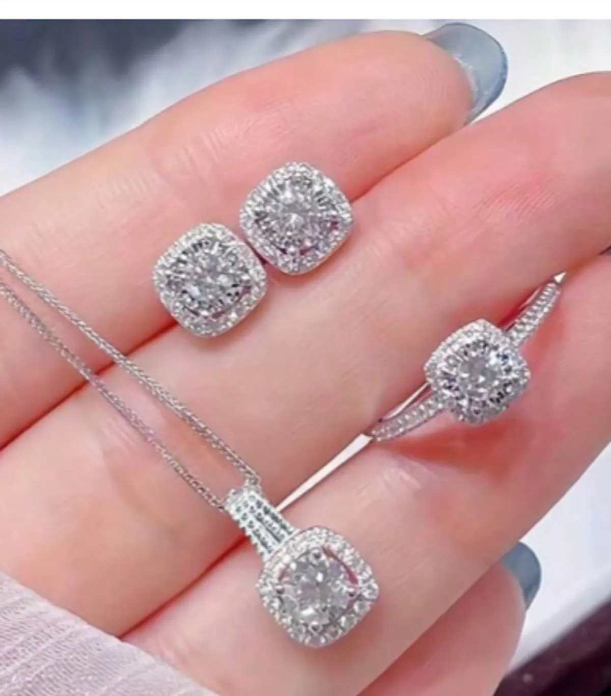 4pcs/Set Cuboid Shiny Zirconia Inlaid Stud Earrings & Pendant Necklace & Ring Elegant Luxury Style Delicate Female Gift | 7Krave Marketplace