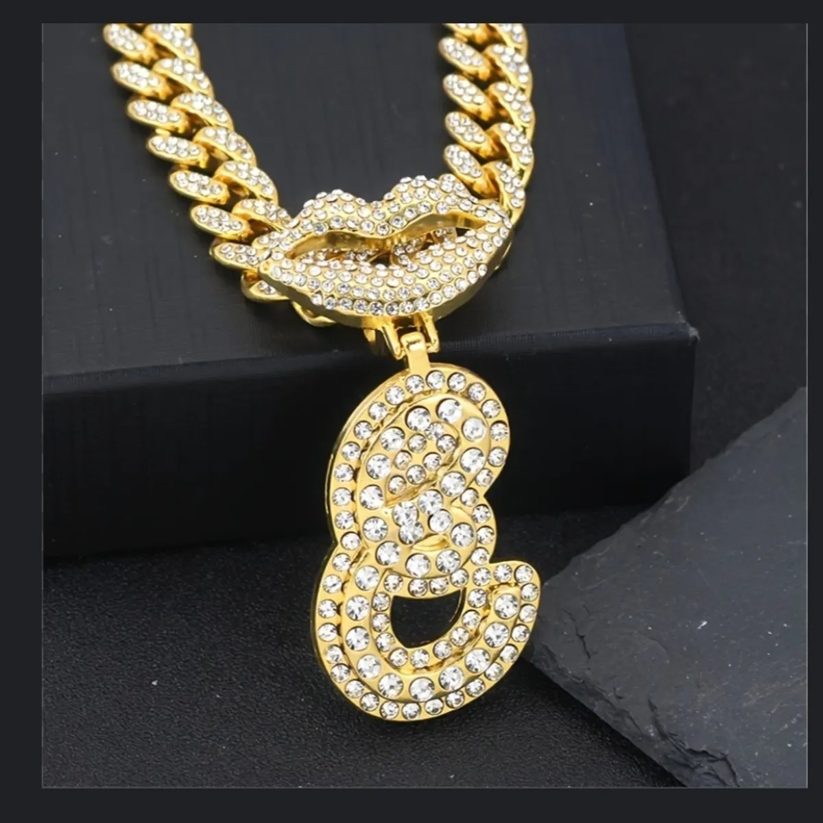 Men's Gold Diamond Lip Pendant Necklace | 7Krave Marketplace