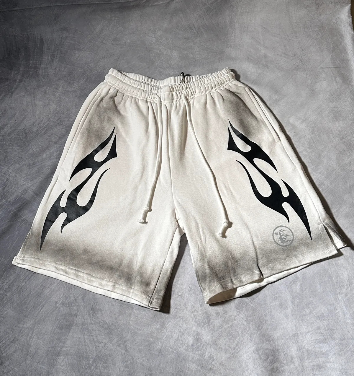 Hellstar Dual Flame Logo Shorts – Off-White- Size Small | 7Krave Marketplace