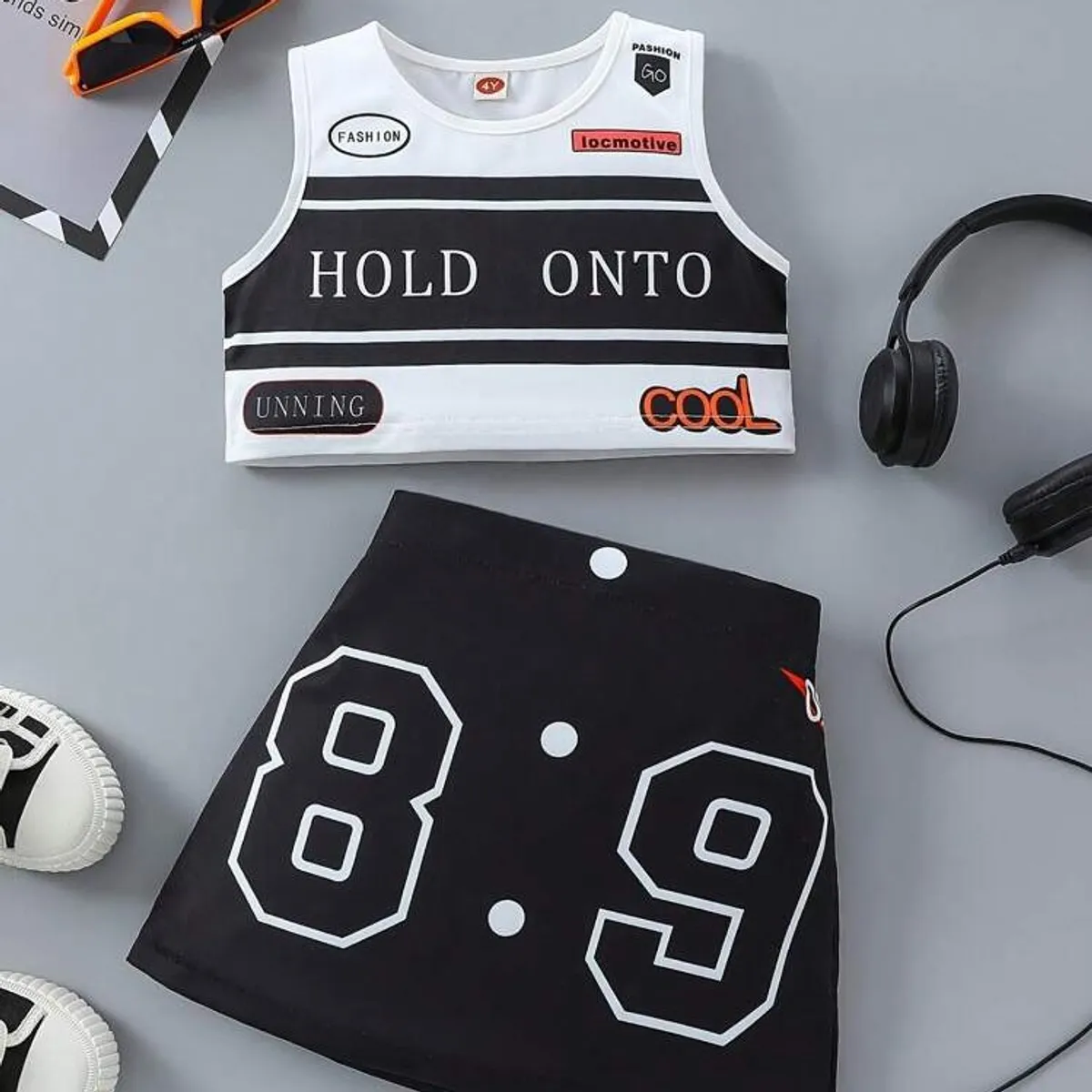 Young Girls Casual Fashion Letter & Number Print Tank Top And Skirt Set - Size: 5Y | 7Krave Marketplace