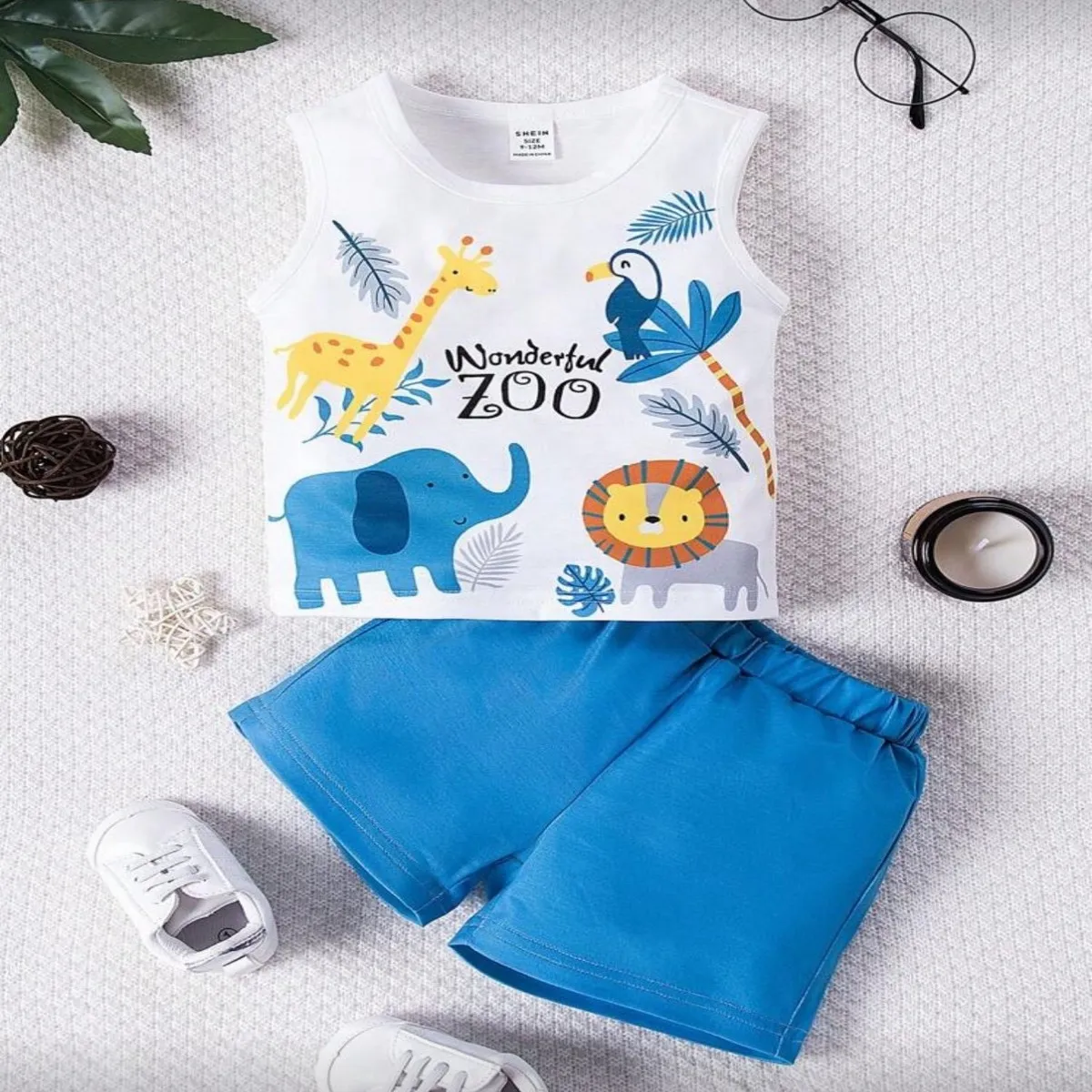 2Pcs Baby Boy Wonderful Zoo Graphic Tank Top & Shorts Size 12-18M | 7Krave Marketplace