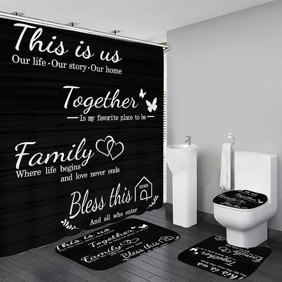 Family Shower Curtain Set Black Home Bathroom Set | 7Krave Marketplace