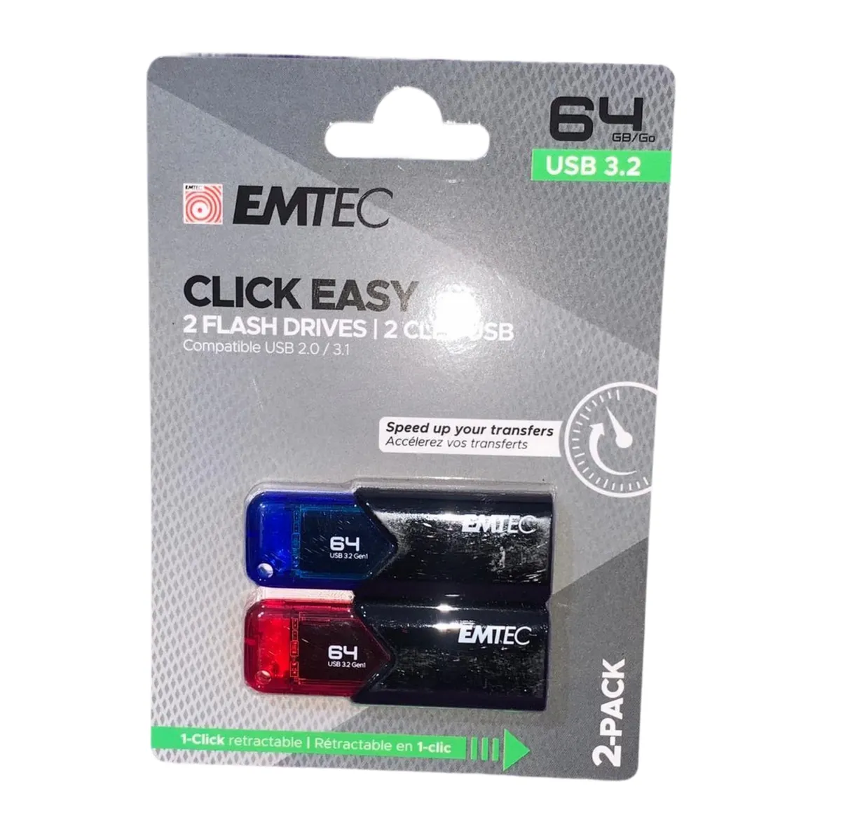 64GB EMTEC click easy Flash Drives pack of 2 | 7Krave Marketplace