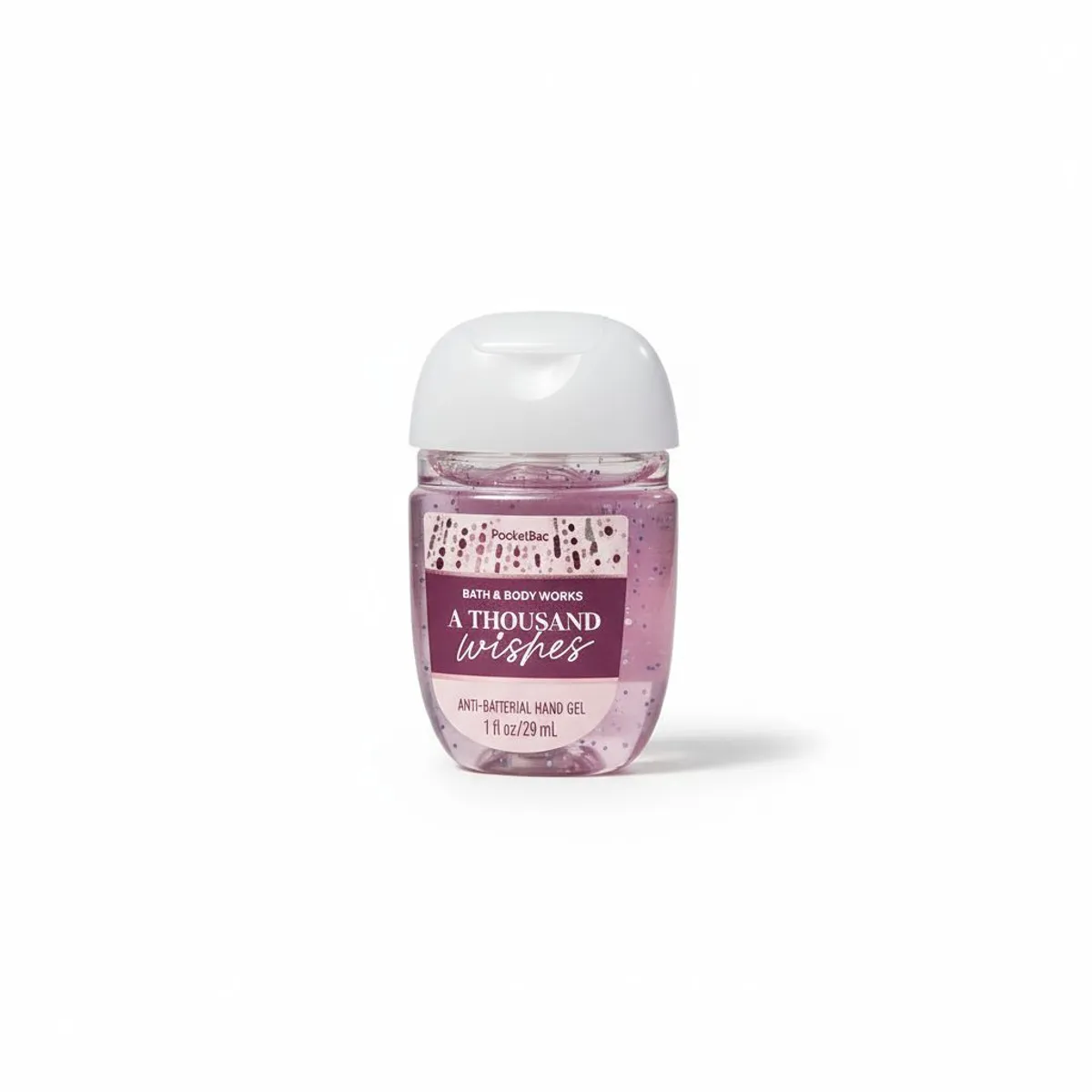 Make every moment sparkle with this best-selling fragrance in a travel-sized hand sanitizer. Enriched with natural essential oils, vitamin E, and moisturizers, it kills 99.9% of germs while keeping your hands soft and smooth. The A Thousand Wishes scent blends warm amber, sparkling champagne, and peonies for a festive, feminine fragrance you’ll love carrying everywhere. Compact and stylish, it’s perfect for pockets, purses, or travel.