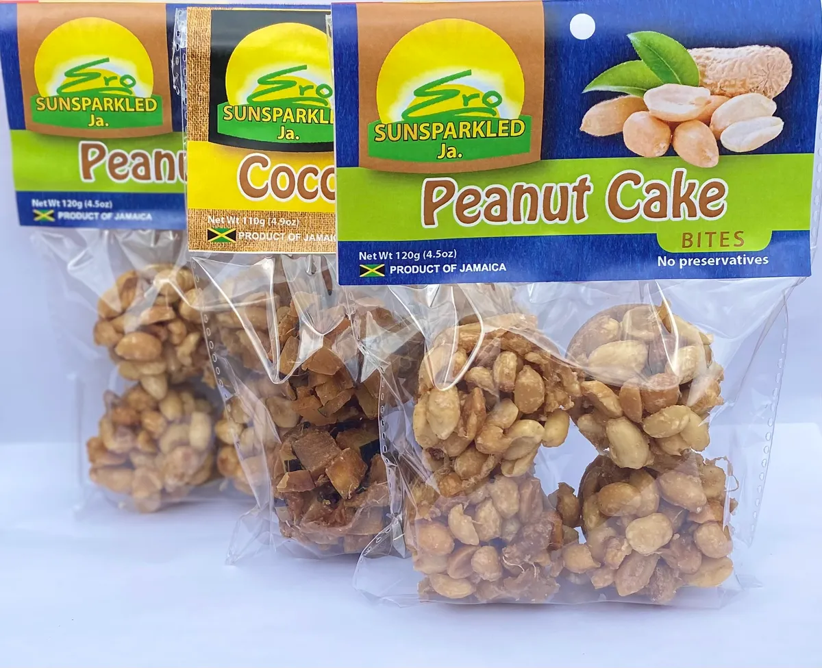 Get ready for a flavor duo that's bold yet balanced! This 3-pack features two crunchy Peanut Cake Bites paired with a flavorful Coconut delight- the perfect mix of textures in every pack. Made with 100% Jamaican-grown ingredients, perfectly sized, each bite is seasoned with the warmth of ginger and spices, meticulously balanced so it's flavorful but not too sweet. Whether you're fueling your day, sharing a treat or satisfying a craving, this bundle is packed with crunch, chew and pure nostalgic goodness.