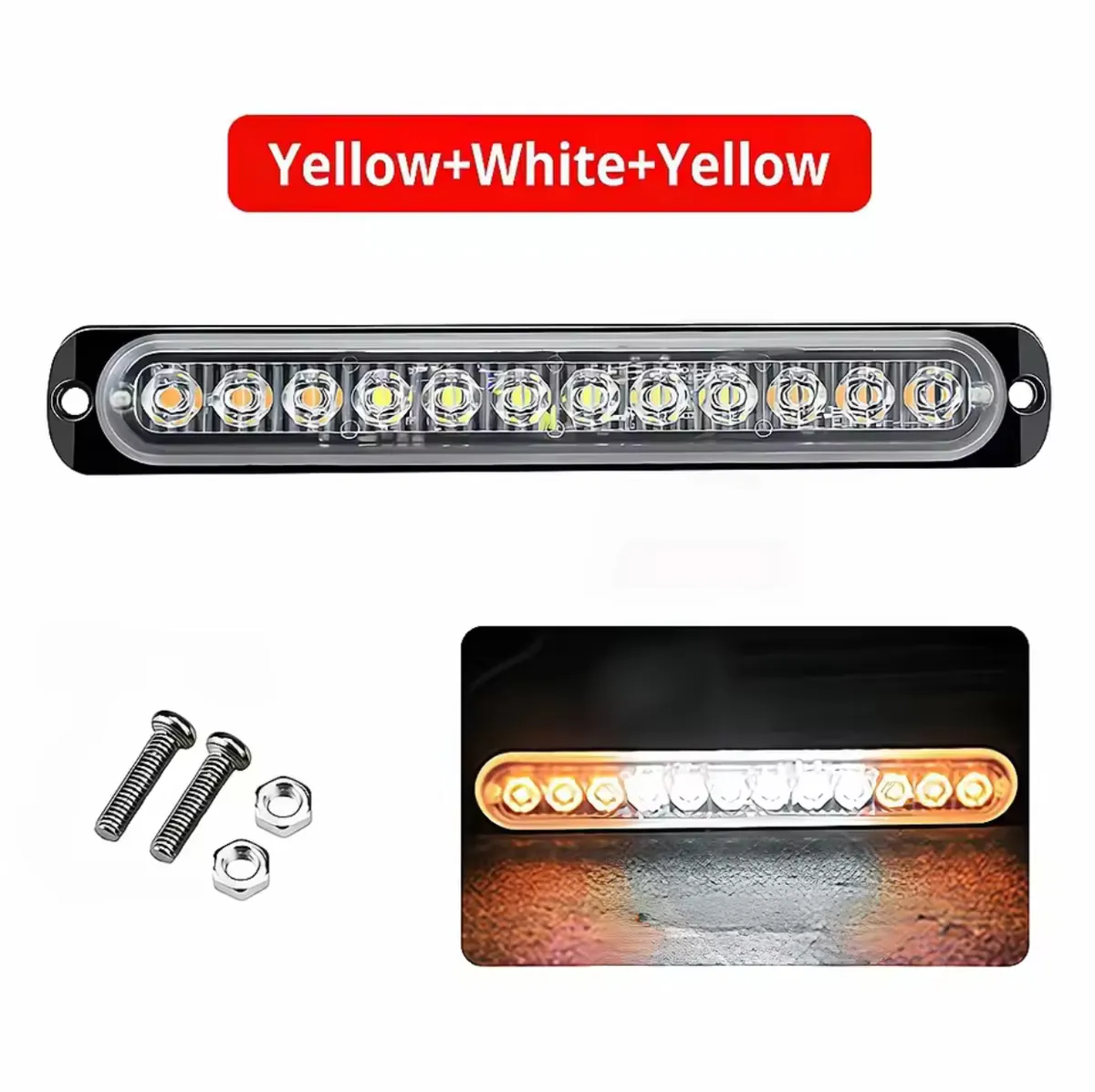 12 LED Emergency Strobe Lights, Warning Flashing Light Bar, for Trucks Car Vehicle Off Road, Amber/White 12-24v (1PC/PACK) | 7Krave Marketplace