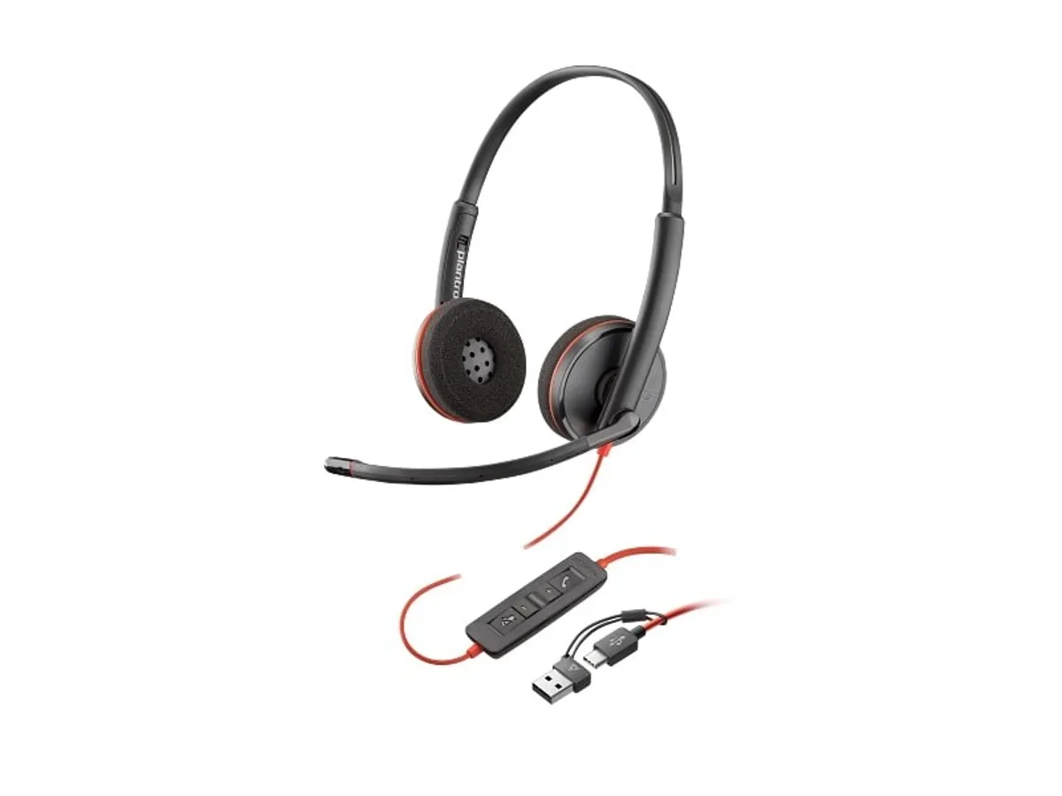 The Blackwire 3200 Series provides a quality audio experience in a headset that's built for enterprise needs. With a sleek design and flexible microphone boom for a customizable fit, what's not to love? Poly signature audio quality Experience the high-quality audio you expect from Poly with a headset that offers PC wideband, a noise-canceling mic, and hi-fi stereo sound options. Dynamic EQ optimizes call quality and automatically adjusts the settings for listening to multimedia. Advanced connectivity Ideal for managing calls on your PC, mobile phone, or tablet combined with the comfort and durability of a corded headset for greater flexibility. Long-lasting comfort and portability Relax while you talk knowing your headset is secure- lightweight metal headband offers durability plus a custom fit. Leatherette ear cushions fold flat for easy portability. Key Features Enhanced call quality Dynamic EQ optimizes the quality of your voice on calls, and automatically adjusts the EQ settings wh.