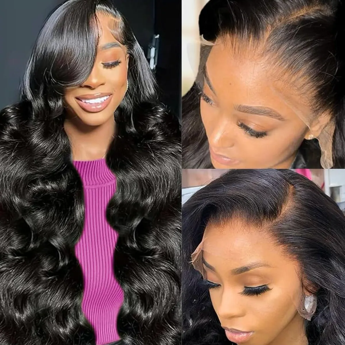 Hair Material: 100% Unprocessed Brazilian Virgin Human Hair in body wave texture with 200% density, featuring full and healthy hair ends Construction: Half machine made and half hand tied with 13x6 HD transparent Swiss lace that adapts to skin tone Cap Specifications: Medium size cap (22-22.5 inch) includes 2 adjustment straps and 4 combs for secure fit Styling Versatility: Features pre-plucked natural hairline with baby hair, allows for multiple parting options and can be dyed, straightened or restyled